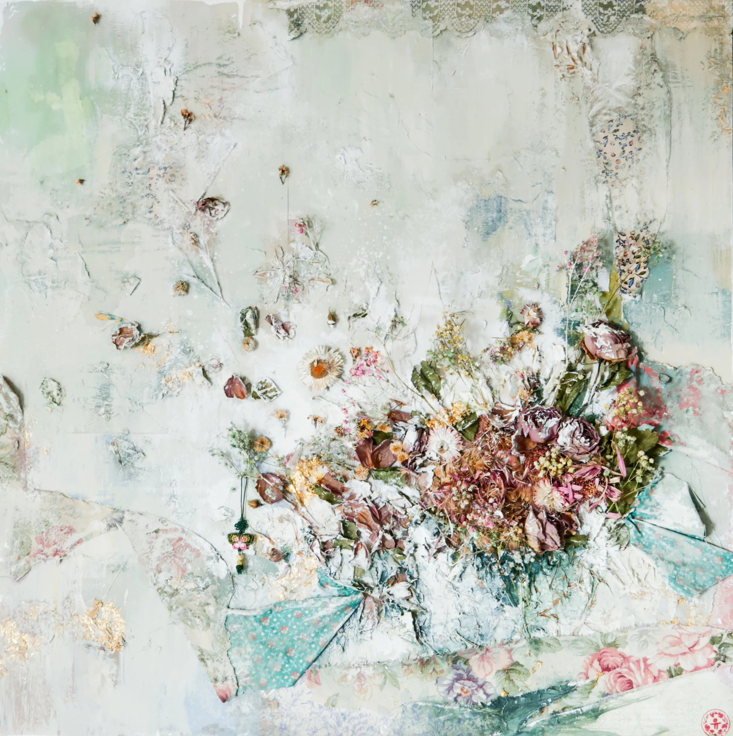 Medium: Photoprint on watercolor paper, oil pastels, color pencils, graphite, scrap paper, acrylic paint, oil paint, plaster, modeling paste, fabric