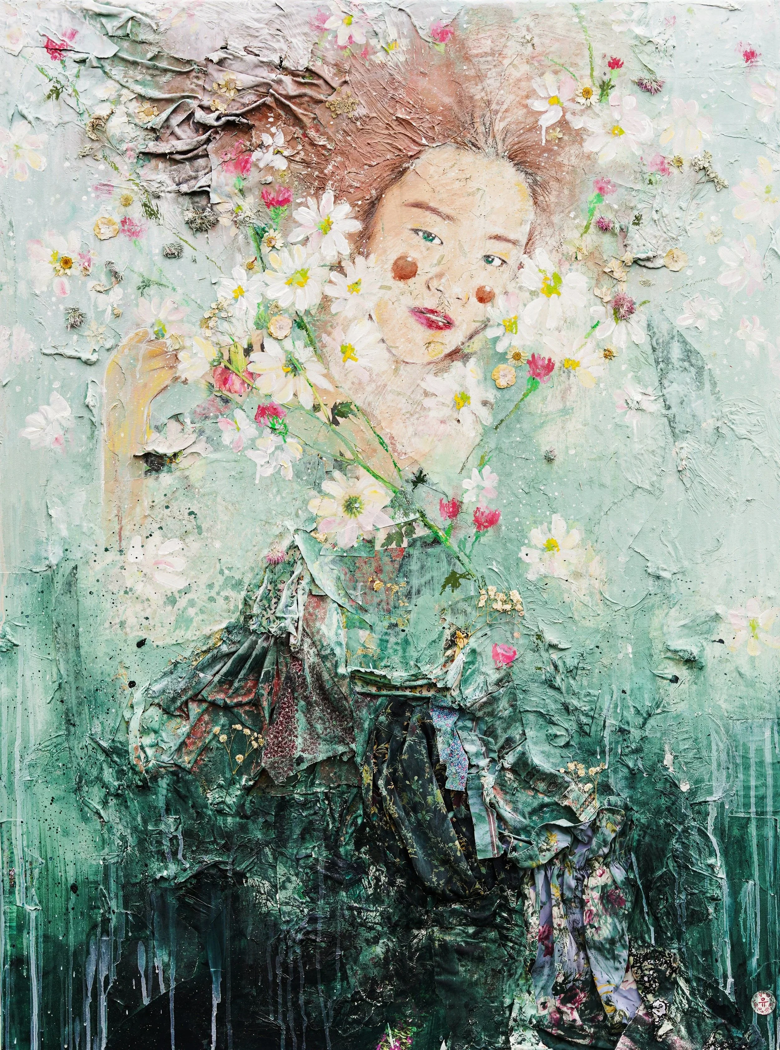 Medium: Photoprint on watercolor paper, oil pastels, color pencils, graphite, scrap paper, acrylic paint, oil paint, plaster, modeling paste, fabric