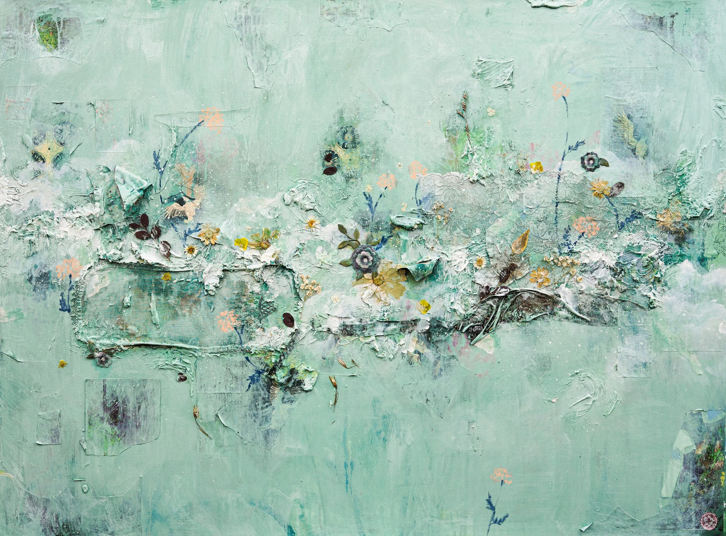 Medium: Photoprint on watercolor paper, oil pastels, color pencils, graphite, scrap paper, acrylic paint, oil paint, plaster, modeling paste, fabric