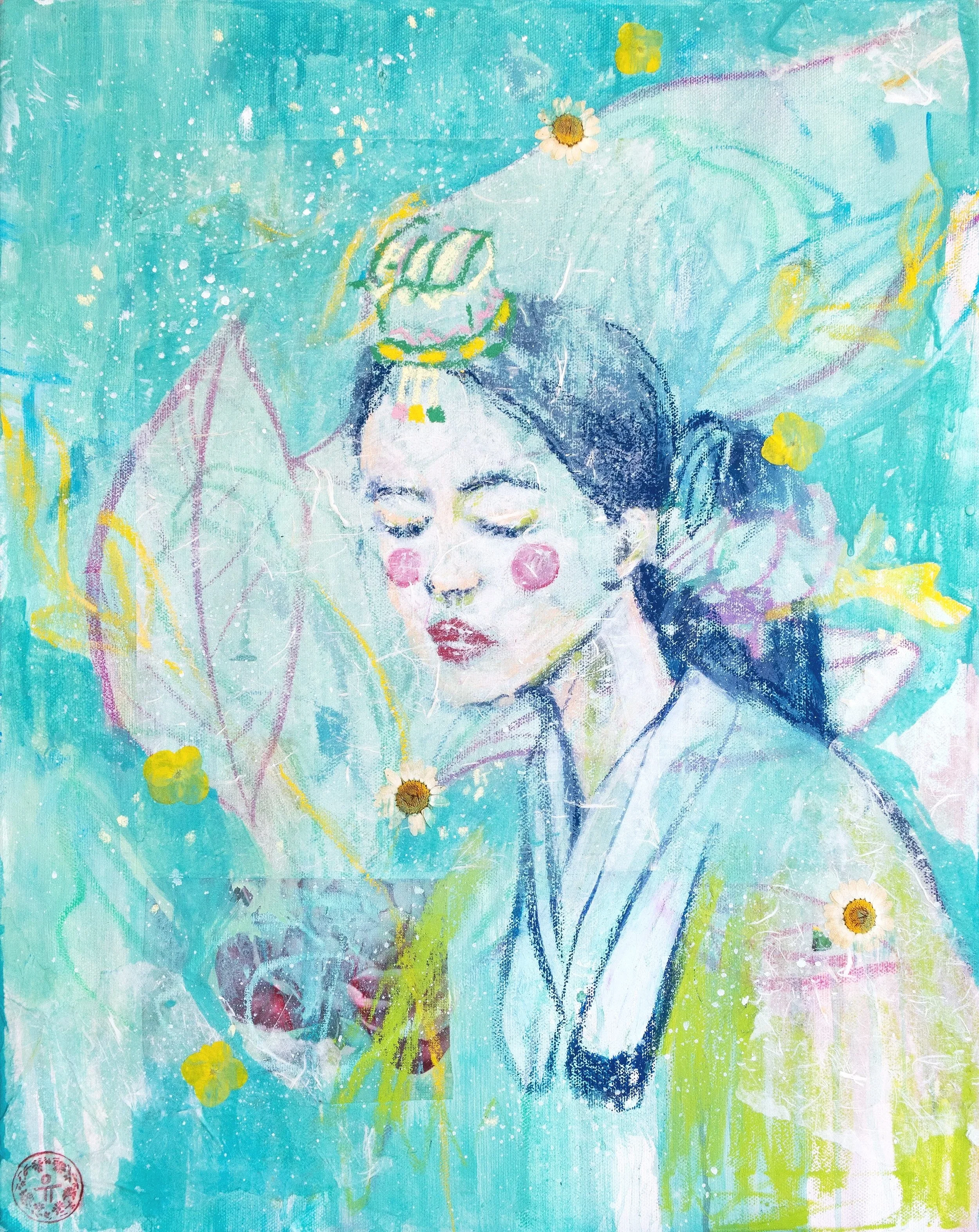 Medium: Photoprint on watercolor paper, oil pastels, color pencils, graphite, scrap paper, acrylic paint, oil paint, plaster, modeling paste, fabric