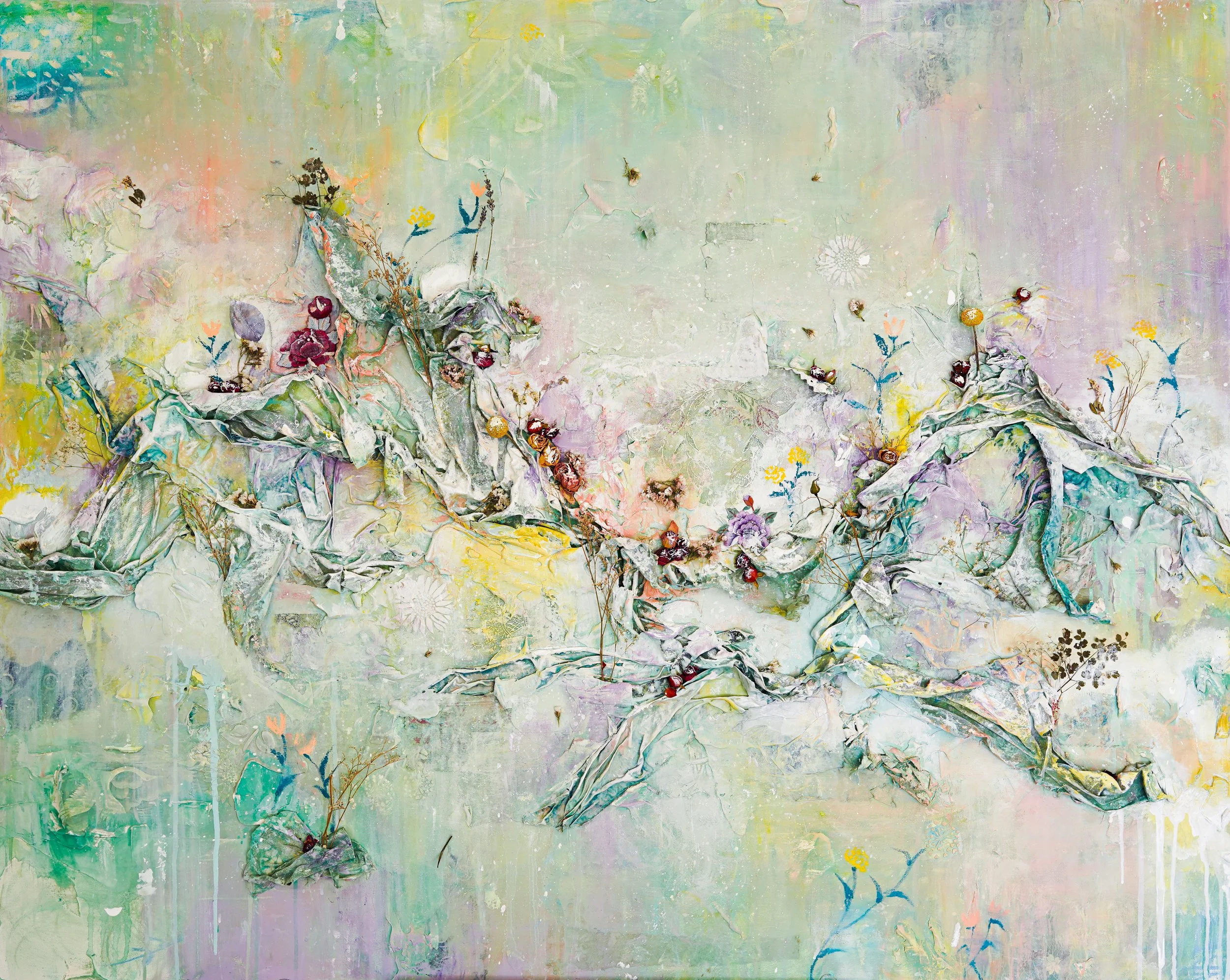 Medium: Photoprint on watercolor paper, oil pastels, color pencils, graphite, scrap paper, acrylic paint, oil paint, plaster, modeling paste, fabric